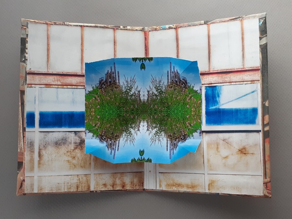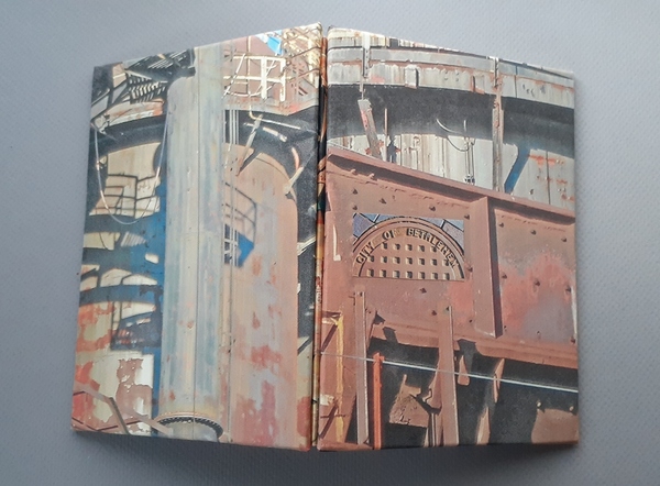 While sheltered at home, I have enlarged this series in progress using materials at hand. This example of a Steelscape book builds on simpler photo zines that address the nearby Bethlehem Steel site, an evolving location I have studied over time. I find reassurance in this continuing work process during these unsettled times.